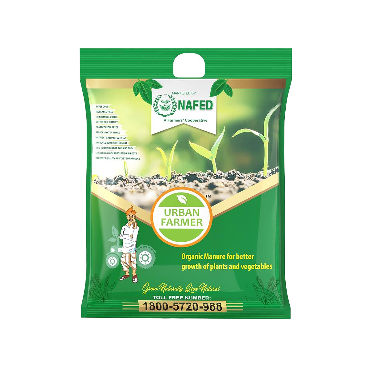 Urban Farmer Organic Manure is made entirely from natural substances and is rich in beneficial microorganisms. It is a highly effective soil conditioner and land reformer. This unique organic manure is prepared using a special method and does not contain any heavy metals, chemicals, insects, harmful pathogens, deodorants, or unpleasant odors.